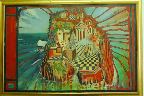 Marco Vinicio Masoni architetto - Autoritratto sull'isola - olio su tela. cm.100x160,18